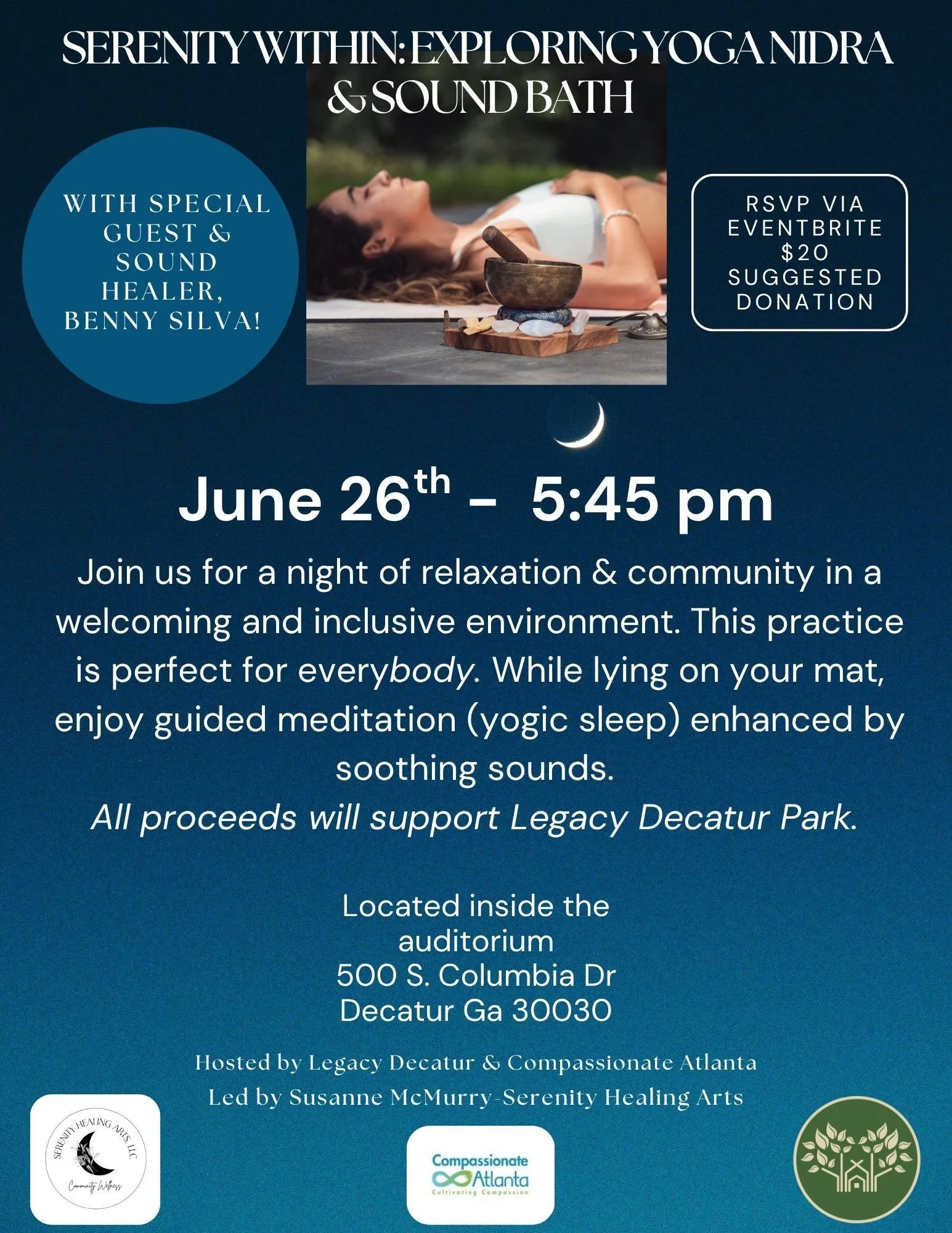 Refreshments will follow the session. Led by Susanne McMurry of Serenity Healing Arts, LLC. Sponsored by Compassionate Atlanta and Legacy Decatur.